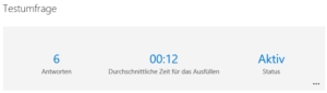 Auf den ersten Blick ist ersichtlich, wie viele Antworten eingegangen sind und die durchschnittliche Zeit, welche für das Ausfüllen benötigt wurde.