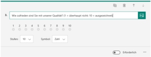 Als Beispiel habe ich nachfolgend eine Mehrfachauswahl sowie die Qualitätszufriedenheitsfrage aufgeführt: