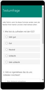 Nach der Erstellung eines Formulars können interne und externe Personen dazu eingeladen werden, dieses auszufüllen. Es ist kein Microsoft-Konto erforderlich. Das Ausfüllen des Quiz oder Formulars ist in jedem Webbrowser möglich und natürlich auch auf dem Mobilgerät zu bedienen.
